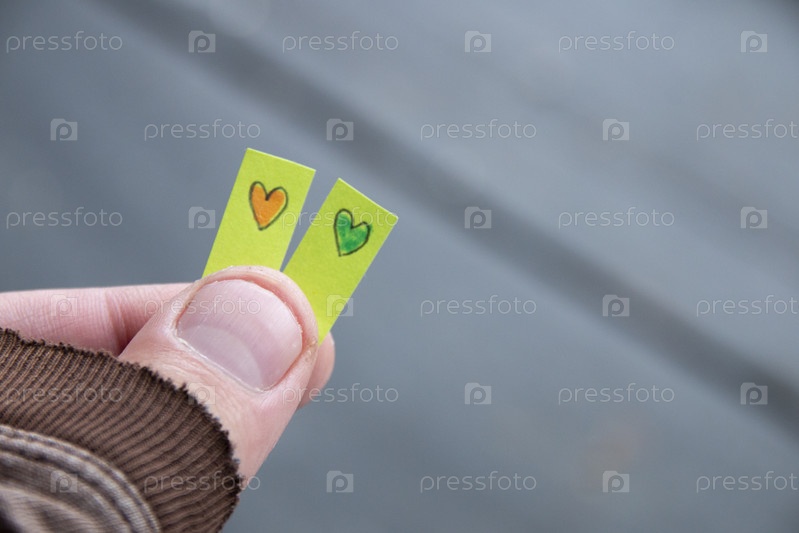Рука держит два нарисованных сердца