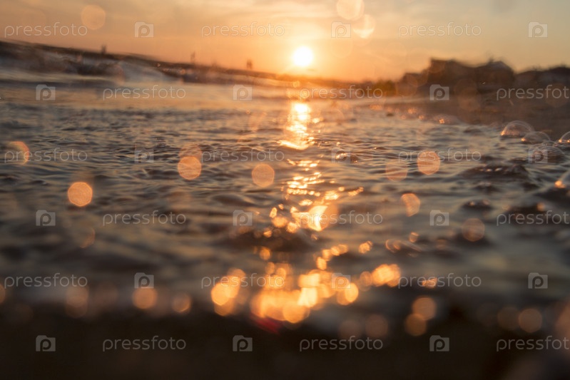 Красивый восход солнца над тропическим пляжем, размытое фото для фона