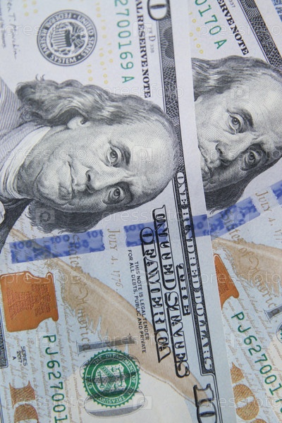 Стодолларовые купюры, крупный план. Финансовый фон