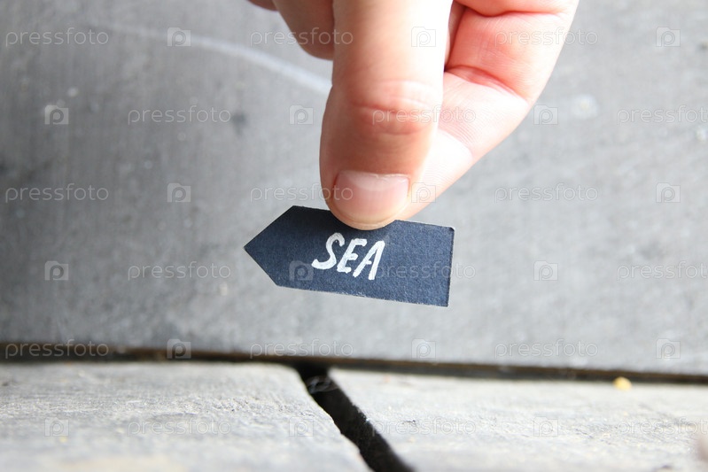 Морская идея. Рука держит табличку с надписью