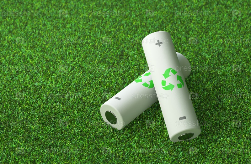Концепция возобновляемых источников энергии. Утилизация батареек и аккумуляторов. 3д рендер