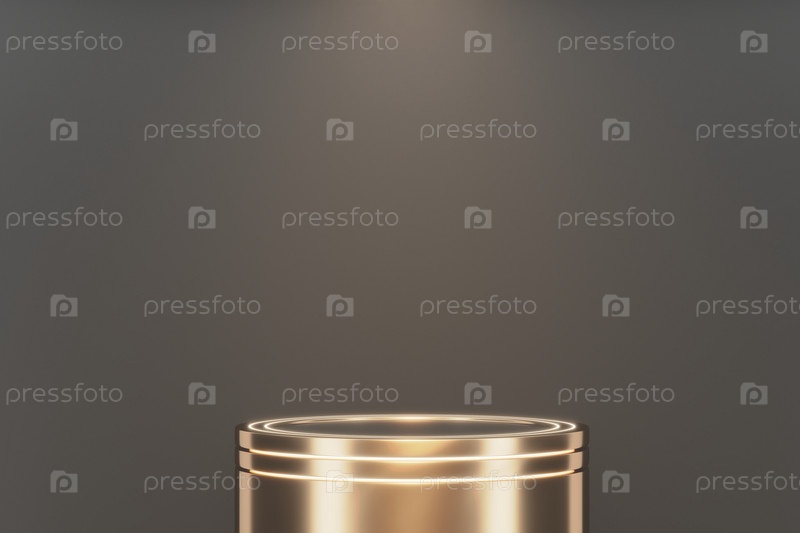 Золотой подиум для вашего дизайна. Цилиндрический столб, золотая труба, музейная сцена, пьедестал изделия или подиум. 3д рендер