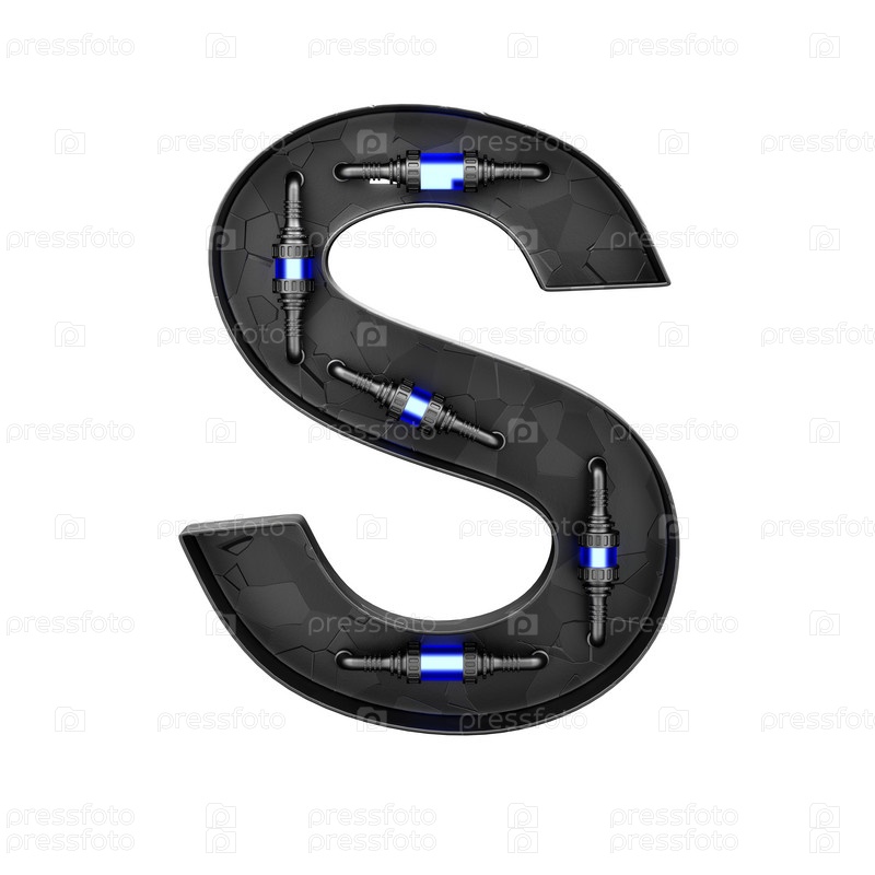 Футуристический технологический шрифт.Буква S. 3D визуализация