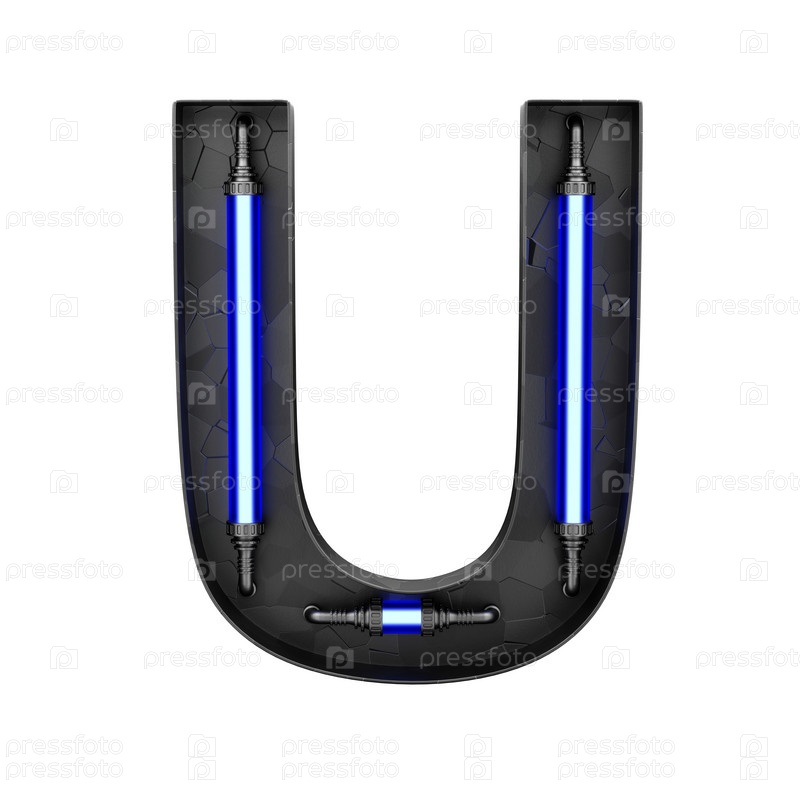 Футуристический технологический шрифт. Буква U. 3D-визуализация