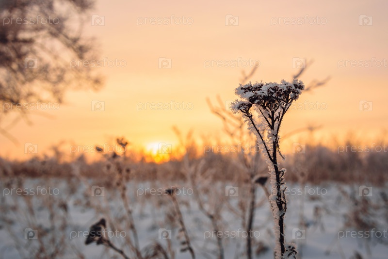 Морозные цветы в лучах заката