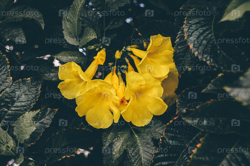 Желтые цветы трубной лозы,кампсис