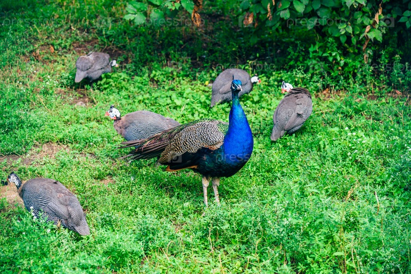 Стая павлинов на лужайке