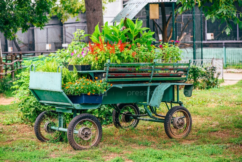 Старый фургон, полный цветов