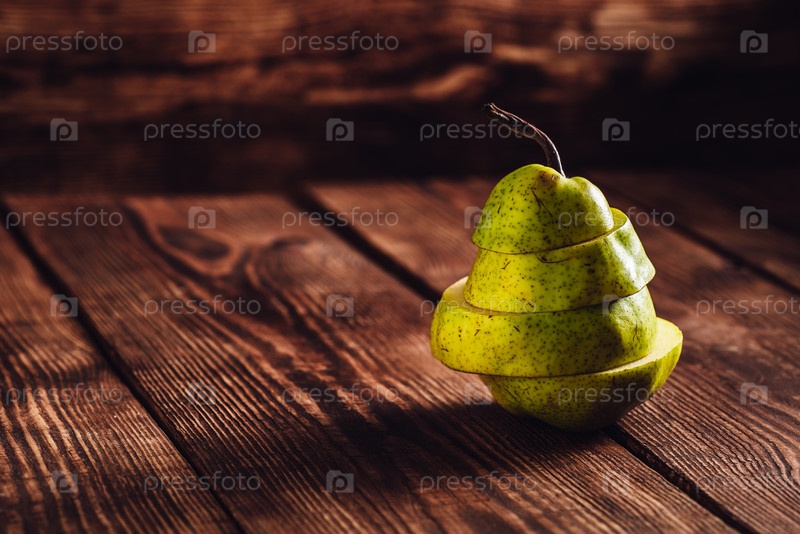Нарезанная груша на деревянном фоне