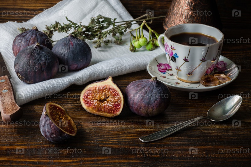 Чашка кофе с сочными инжирами для вкусного десерта