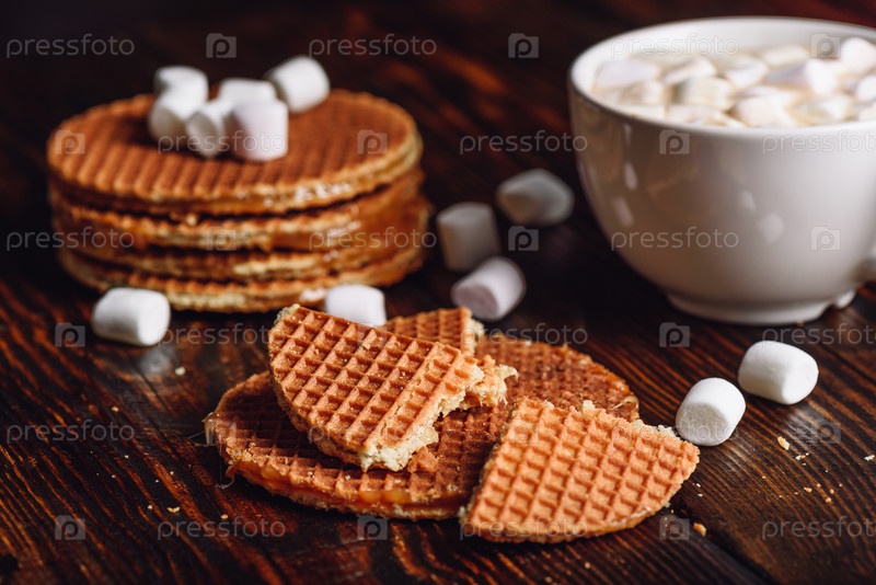 Вафли и горячее какао с зефиром