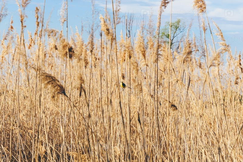 Желтая трясогузка в высушенной траве