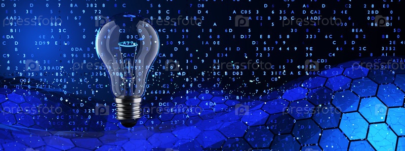 Концепция идеи, лампочка с идеей надписи на фоне шестиугольников. 3д рендер