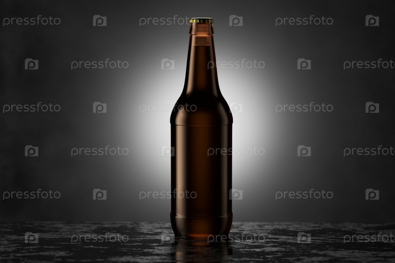 Темно-янтарная бутылка с пивом на темном фоне. 3д рендер