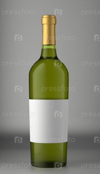 Зеленая бутылка с вином на сером фоне. Зеленая бутылка с этикой для вашего дизайна. 3д рендер