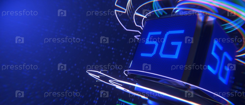 Концепция связи 5g. Абстрактный фон с надписью 5g. 3D-рендеринг