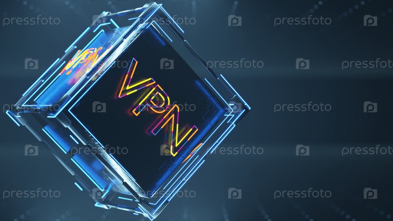 Надпись vpn на цифровом кубе. концепция технологии vpn. 3D-рендеринг