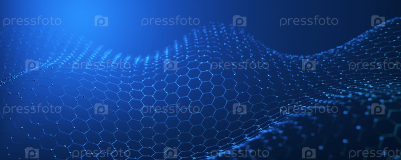 Абстрактные футуристические технологии с многоугольными формами на темно-синем фоне. Фон технологий подключения, интернет-коммуникация. Концепция сети. 3д рендер