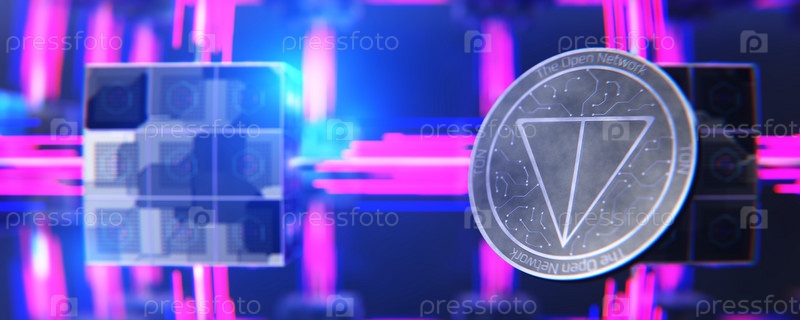 Криптовалюта TON на футуристическом фоне. Блокчейн ТОН. Открытая сеть TON. 3D-рендер