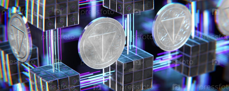 Открытая сеть TON в блоках блокчейна. 3D-рендер