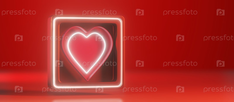 Как в соцсетях. Светящийся значок. Красное сердце. 3д рендеринг