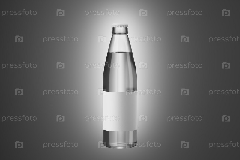 Макет бутылки с водой на сером фоне. 3д рендер