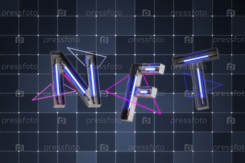 Текст NFT на темном футуристическом фоне Концепция не взаимозаменяемых токенов NFT 3D-рендеринг