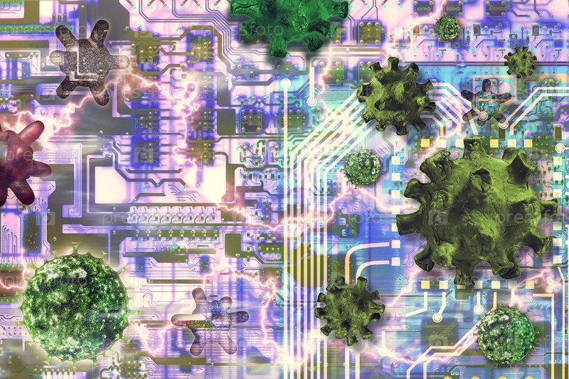 Концепция компьютерного вируса внедряется в систему. взлом и заражение компьютера. 3D-рендеринг