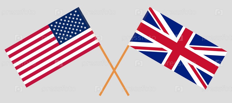 Скрещенные флаги США и Великобритании. Официальные цвета, корректные пропорции