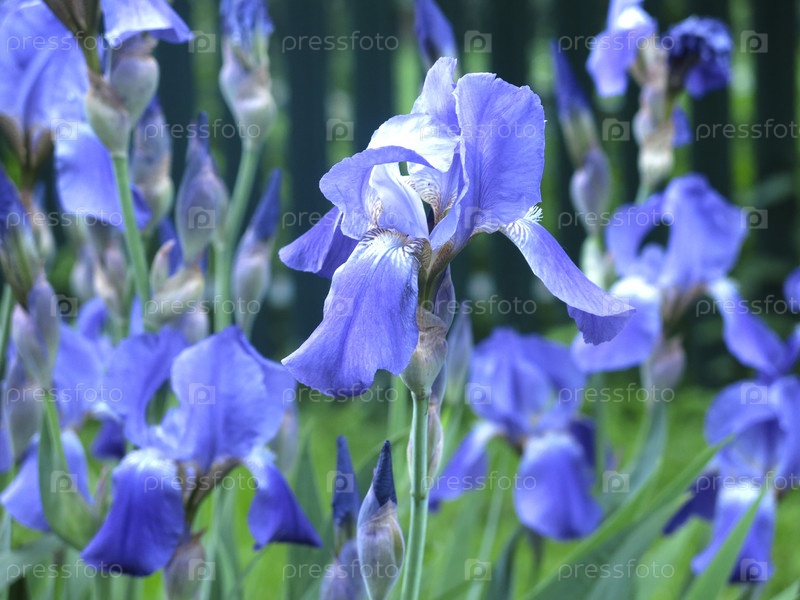 Голубые ирисы (Iridaceae) цветут в июле в саду