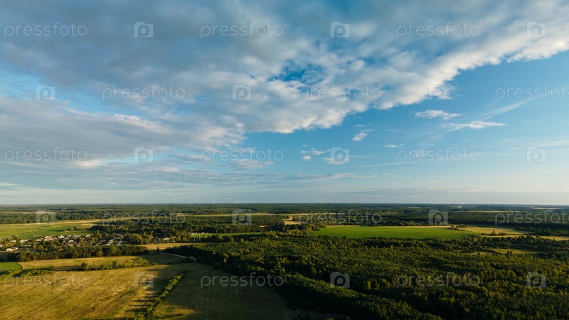 Сельский пейзаж. Зеленые леса и поля. Аэрофотосъемка