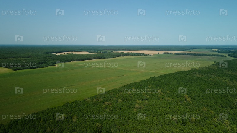 Сельский пейзаж. Зеленые леса и поля. Аэрофотосъемка