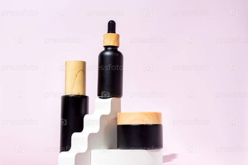 Набор косметики по уходу за кожей. Мокапы бутылок с логотипом других производителей. Ежедневный уход и полноценное питание для сухой кожи. Антивозрастная косметика с коллагеном, пептидами и натуральными ингредиентами