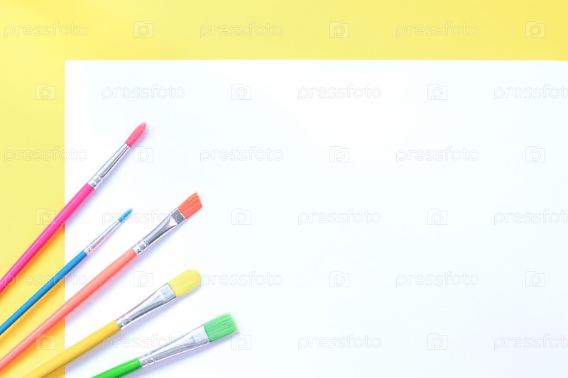 Разноцветные кисти, выложенные на бумаге