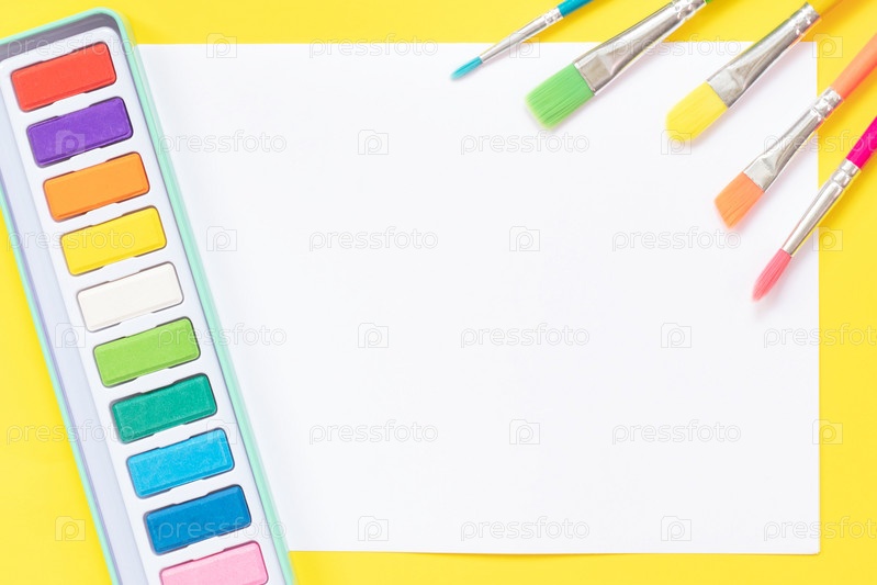 Краски и кисти на бумаге