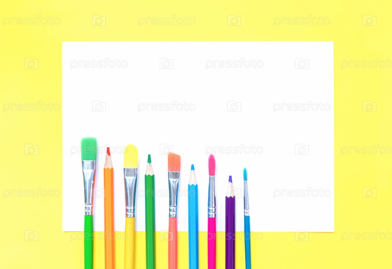 Карандаши и кисти на бумаге