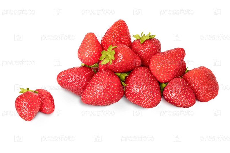 Большая сочная клубника лежит на белом фоне, две ягоды расположены бок о бок, изолируются
