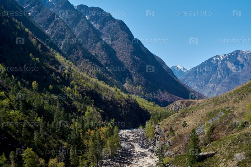 Вид на долину реки Чулча. Республика Алтай, Сибирь. Россия
