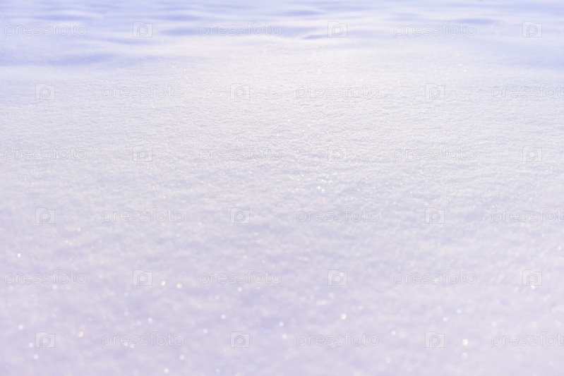 Снег, снежный покров в лучах заката с расфокусированным светом, с зонами фокусировки и расфокусировки