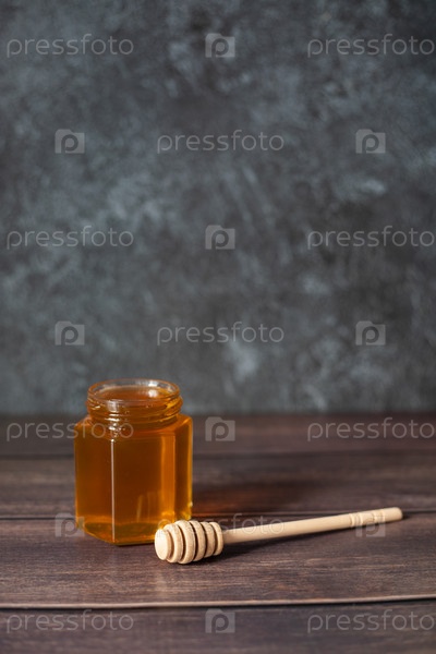 Одна банка меда на темном фоне. С местом для текста