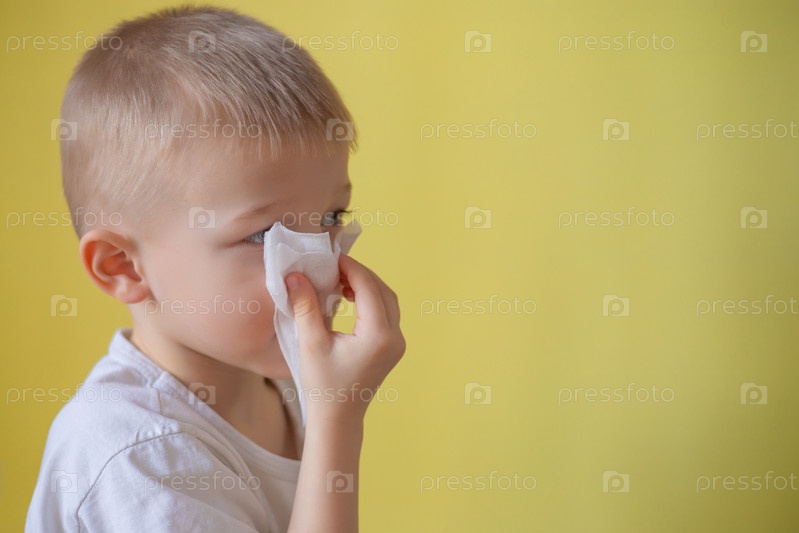 ребенок сморкается носом в платке