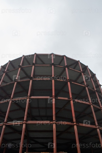 Заброшенная автостоянка недостроена на фоне пасмурного ясного неба