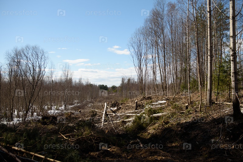 Участок вырубки леса под газопровод
