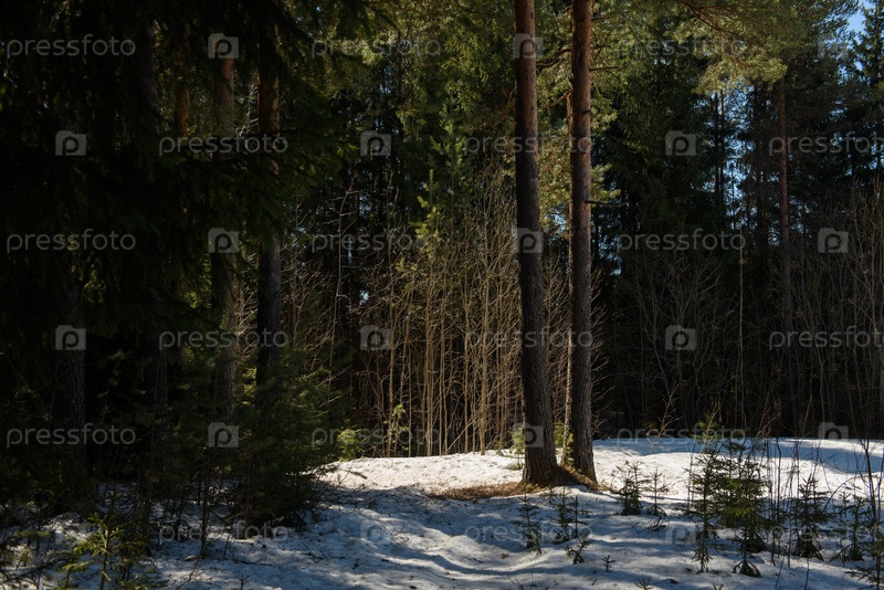 Природа посреди весны в таежном лесу