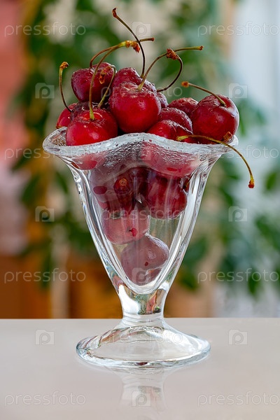 Вишни в стеклянной вазе