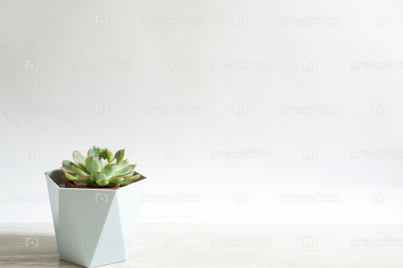 Эхеверия в горшке на сером фоне на столе. Комнатное растение, зеленый дом, суккулент – символ гармонии. Скопируйте пространство. Уход за комнатными растениями