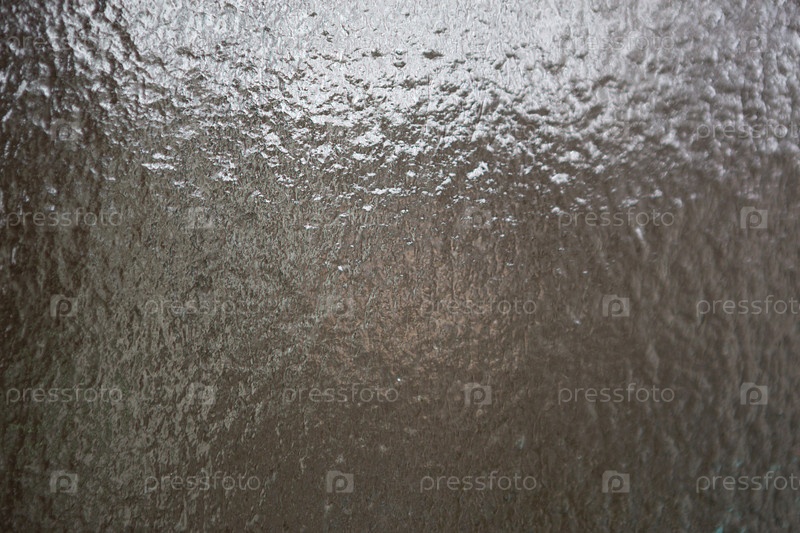 Замерзшая вода на окне. Прозрачное стекло со льдом полупрозрачно, ледяной дождь. Лобовое стекло автомобиля после дождя - безопасность дорожного движения зимой, отсутствие видимости. Фон