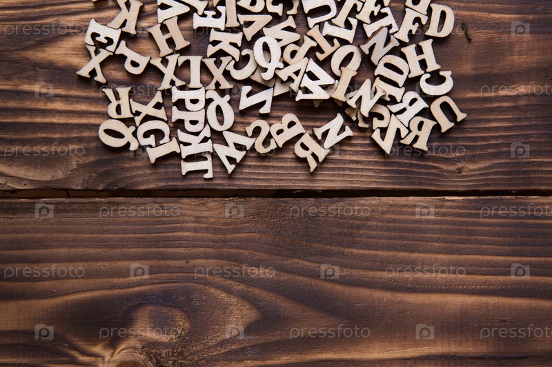 Буквы английского алфавита на темном деревянном фоне. Концепция образования, словесные игры, рукоделие. Место для текста
