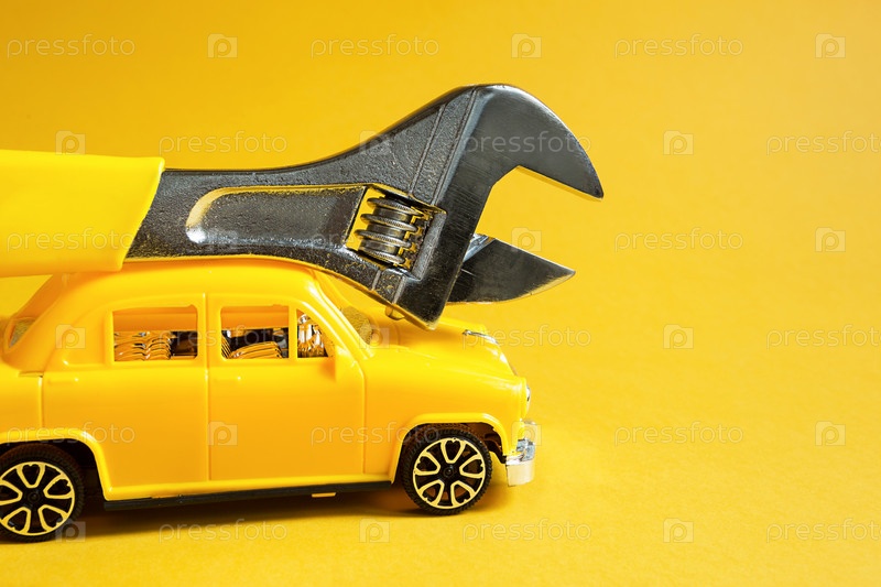 Авторемонт и ремонт техники и автомобилей, срочный выезд мастера для устранения поломки, сантехнические работы, строительство. Ремонт автомобиля с регулируемым универсальным ключом на желтом фоне