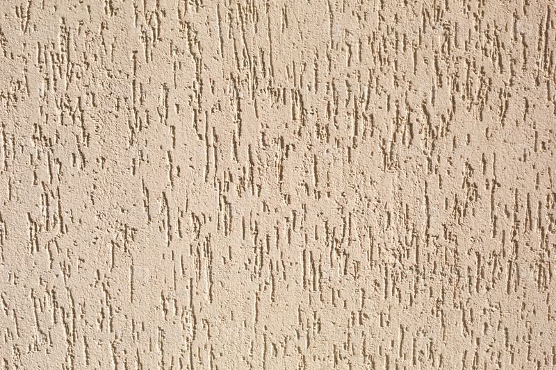 Штукатурка на стене с рисунком короеда бежево-песочного цвета. Фон, текстура. Наружная отделка здания, дома